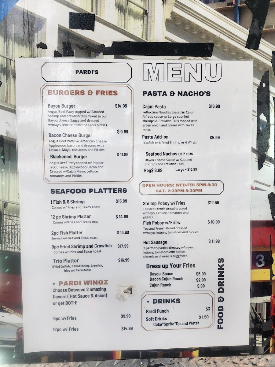 Customer reviews highlight the bold flavors and generous portions, affirming Pardis as a culinary gem worth exploring. Whether it’s the seasoned pasta or the iconic Bayou fries, each dish promises a satisfying experience. Don't miss out on this food truck sensation!